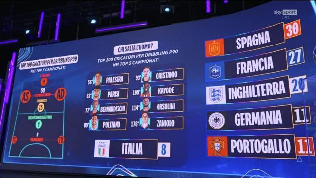 这8名榜单上的意大利人,只有帕莱斯特拉和波利塔诺得到了加图索国家队的征召。此外,在天空体育嘉宾迪卡尼奥看来,你需要区别“简单过人”和“真正的盘带”:“如果我把球往前一趟,闪出空当之后传中,那也算是一次‘过人’。但这不一定意味着制造人数优势,因为我可能只是把你暂时甩开,完成了传中,但没有逼出第二名防守球员。”