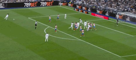 第22分钟,卜拉欣-迪亚斯传球,贝林厄姆抢点射门稍稍偏出
