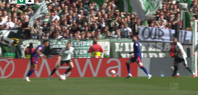 第90+4分钟,扳回一城,穆萨禁区内破门,不莱梅1-2莱比锡