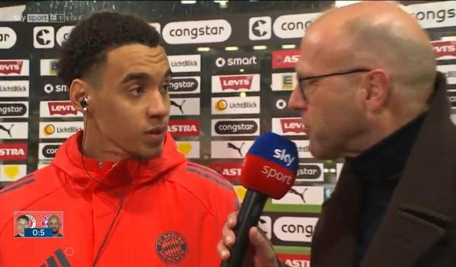 在客场5-0大胜圣保利的赛后,本场比赛传射建功的拜仁中场穆西亚拉接受了德国天空体育的采访。
